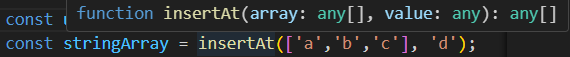 이런식의 예시를 볼때 밑에 updataArray, stringArray 안 insertAt 타입을 보면 전부 any로 되어 있을 것이다.
