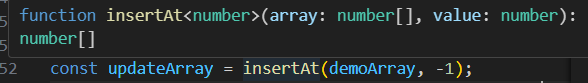 const stringArray = insertAtBeginning<string>(['a', 'b', 'c'], 'd');