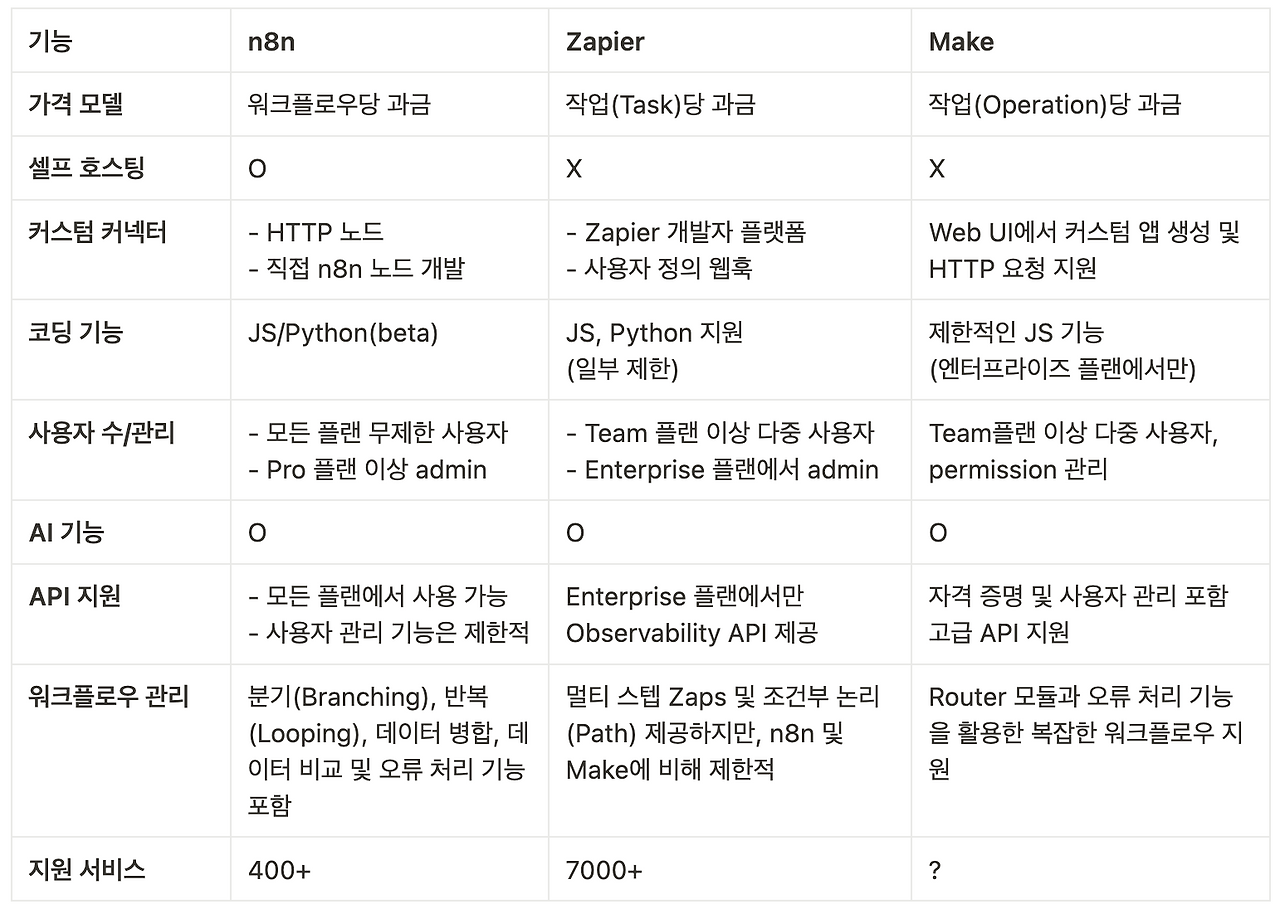 이런 자동화 워크플로우가 가능한 다른 플랫폼과 비교를 해보았습니다!
