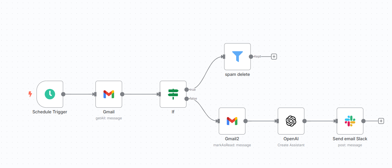 - 만약 스팸 메일이라면? → delete (조건에 이메일 필터링 키워드 추가)