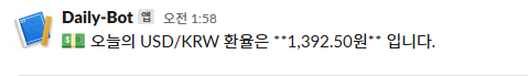 say(text=f"오늘의 USD/KRW 환율은 *{rate:,.2f}원* 입니다.", thread_ts=thread_ts)